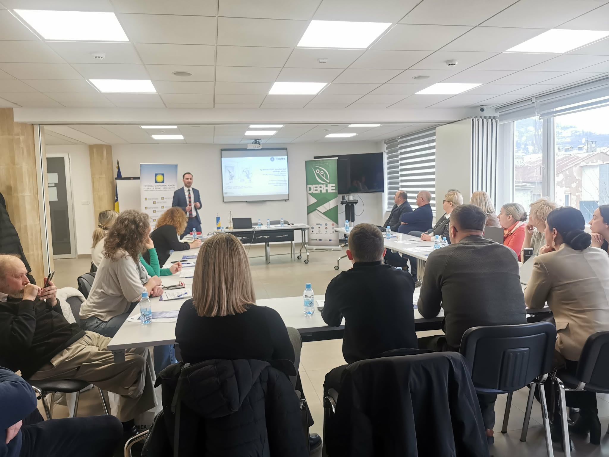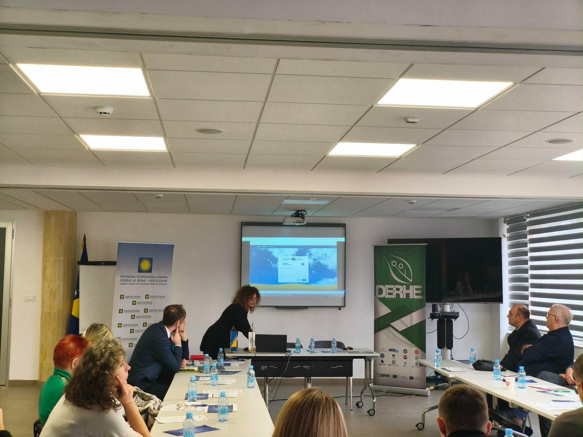 Minister prof. Dr. Dušanka Bošković (Ministry of Science, Higher Education and Youth, KS) opened the #DERHE info day with an address titled "Vision of the future: sustainability and resilience in focus" held on February 2, 2026. and organised by the Chamber of Commerce of FBiH and UNSA, Faculty of Agriculture and Food, Sarajevo. Minister Bošković highlighted that modern technology allows us to address individual challenges and create tailored solutions, enhancing system agility and involving all participants. She stressed the need to strengthen digital and green capabilities/skills in ways that shift our thinking, change the mindset about development, and benefit society as a whole. This was the central theme of the info day and the project #DERHE - Digital Education Readiness in Higher Education, no. 101128628; ERASMUS-EDU-2023-CBHE.