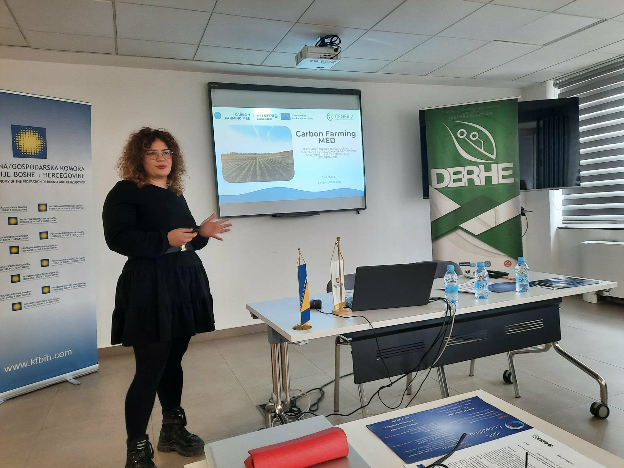 Finally, the presentation "Accelerating the development of the carbon market for mitigating and adapting to climate change in Mediterranean agriculture", prepared by Ema Midžić from the NGO CENER 21, presented how we can join the "carbon credit market", that is, how agricultural producers and other actors can provide financial resources for business projects that reduce the emission of carbon equivalents. A comprehensive, easy-to-use, and highly designed carbon farmer platform is presented, which should help farmers verify GHG emission reductions on each farm.